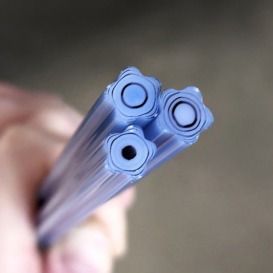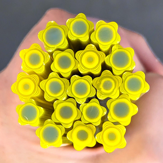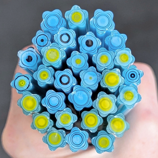 Oceanside Floral Inspired Murrini designs! All murrini in this category is hand-pulled Oceanside Glass COE 96. To keep the shape of this specialty murrini, do not fire more than 1345 - 1365 degrees Fahrenheit.