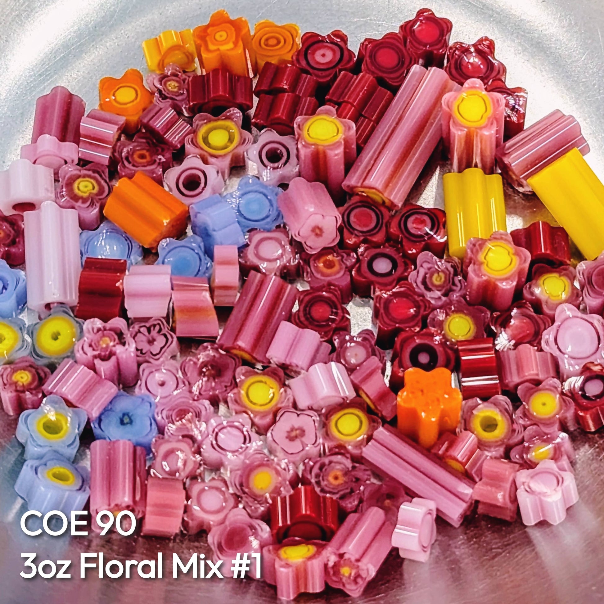 Includes fabulous murrini odds and ends. Seconds, Cane Nips, Tiny, Big, Thin, Thick, Longer, Shorter, Hollows, Slanted Slices, you name it. Great for adding to your creations.
