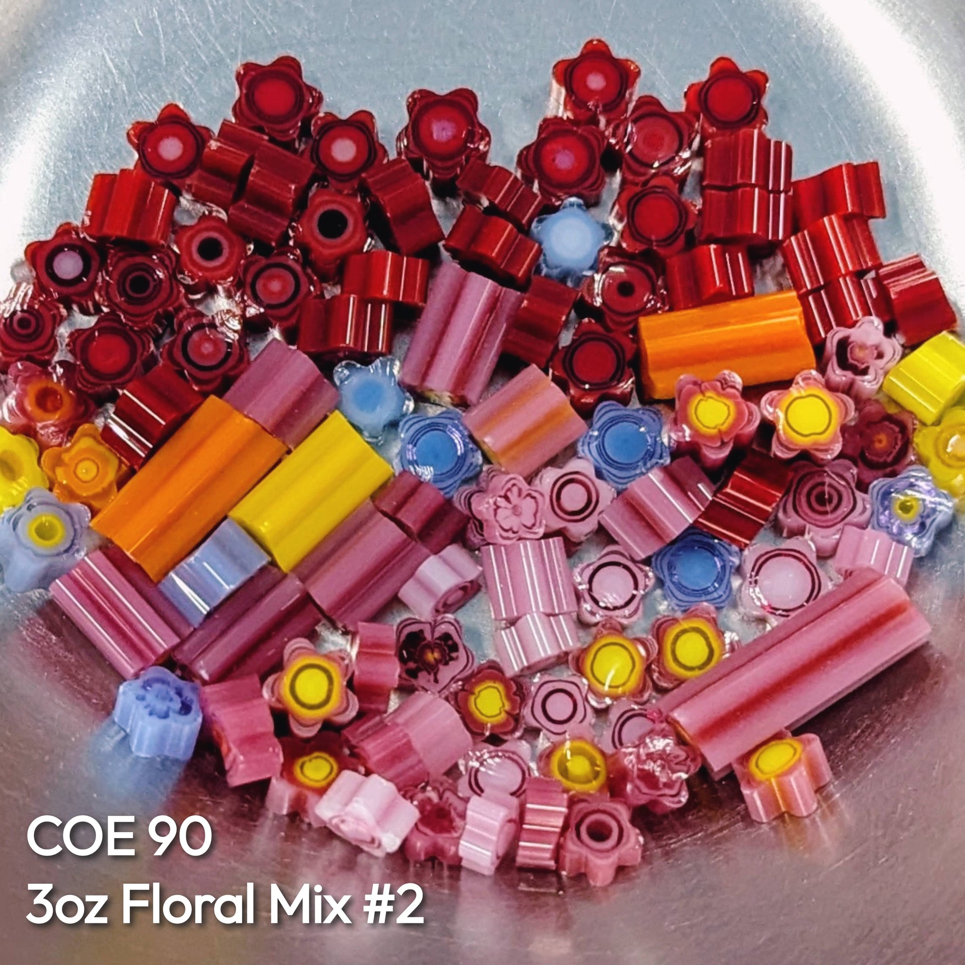 Includes fabulous murrini odds and ends. Seconds, Cane Nips, Tiny, Big, Thin, Thick, Longer, Shorter, Hollows, Slanted Slices, you name it. Great for adding to your creations.