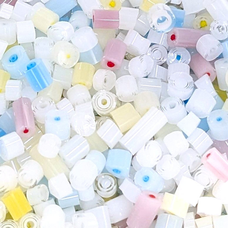 Have some fun with this play pack! Includes fabulous murrini odds and ends. Seconds, Cane Nips, Tiny, Big, Thin, Thick, Longer, Shorter, Hollows, Slanted Slices, you name it. Great for adding to your creations.