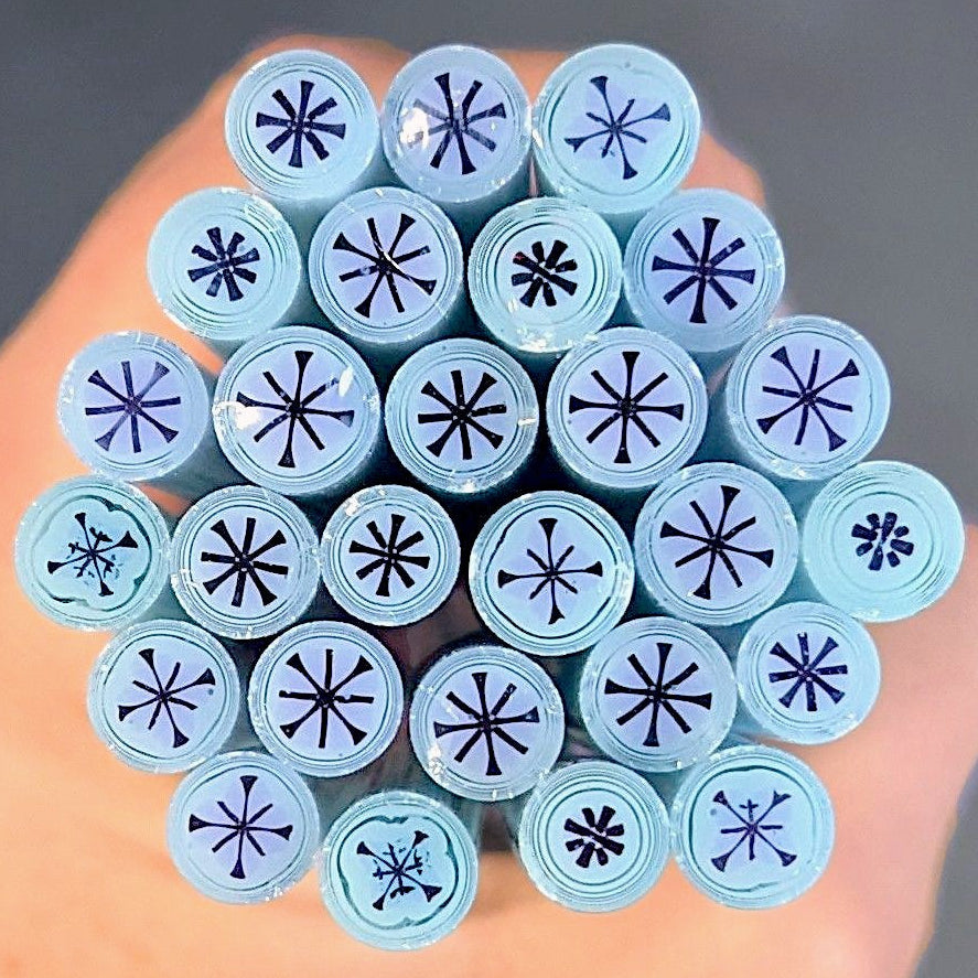 Slices: Number of slices will vary depending upon the diameter of murrini. Slices are typically between 1/8" - 1/4" (3mm - 6.5mm) tall but may vary slightly + or -. An entire pot is chopped, mixed up for variety and then sorted into 1oz bags. No hollows. Diameter of Sliced Murrini is typically between 6 - 10.5 mm.
