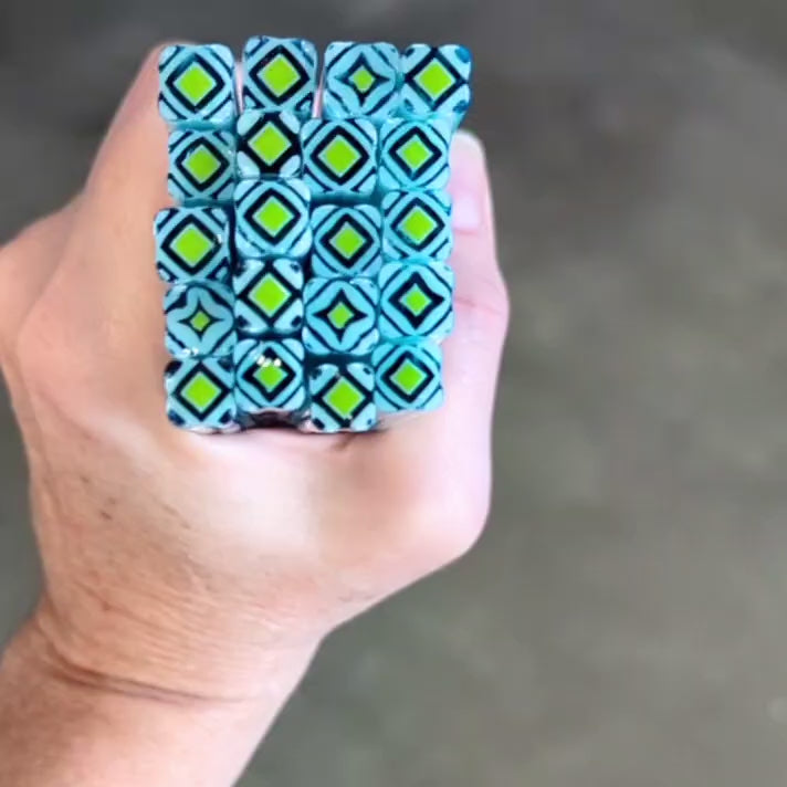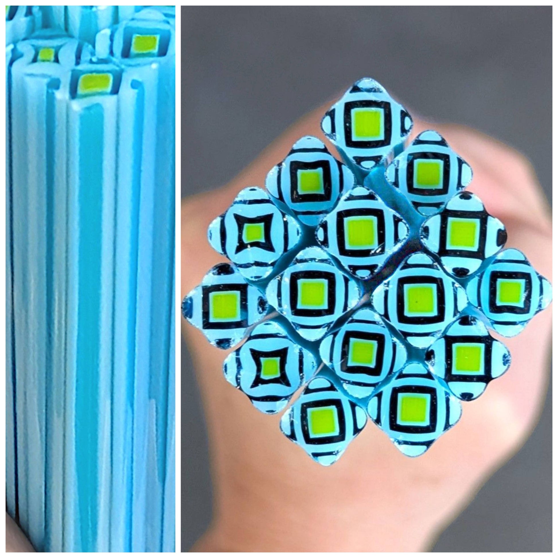 Med/LG Slices: Approximately 35 slices (may vary slightly + or - depending upon the width/height of the murrini). Slices are typically between 2mm - 6mm tall but may vary slightly. Width of Sliced M/LG Square Murrini is typically between 7.5 - 10.5 mm.