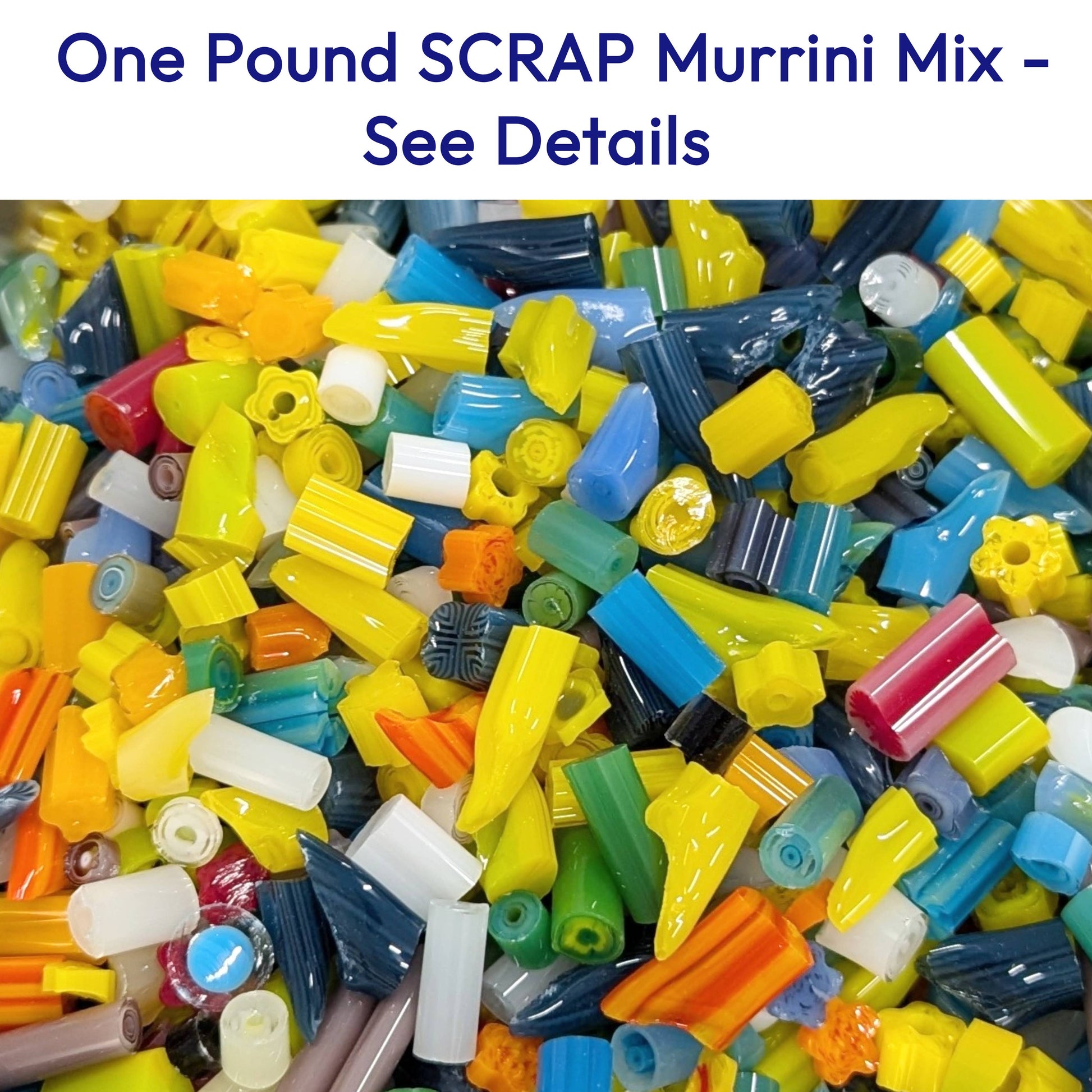IMPORTANT - This is one pound of MURRINI SCRAP. Cut ends, pointy bits, thin slivers, broken pieces, and seconds thrown in for fun.