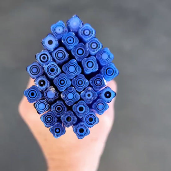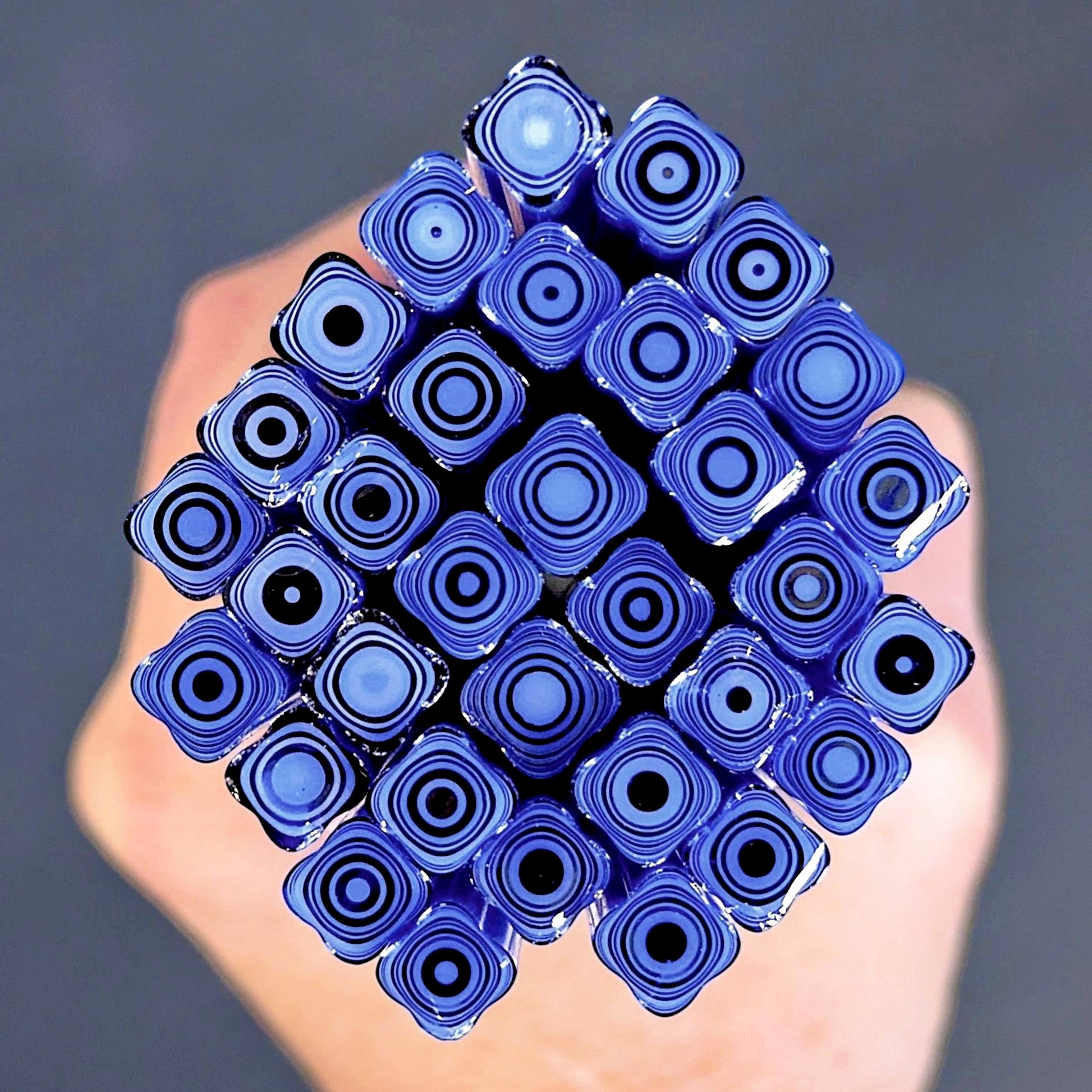 1 oz S/M Cane: 5 pieces of cane each approximately 2" in length from various areas of the pull for variety. Width of M/LG Square Cane is typically 6.5mm - 8.5mm.