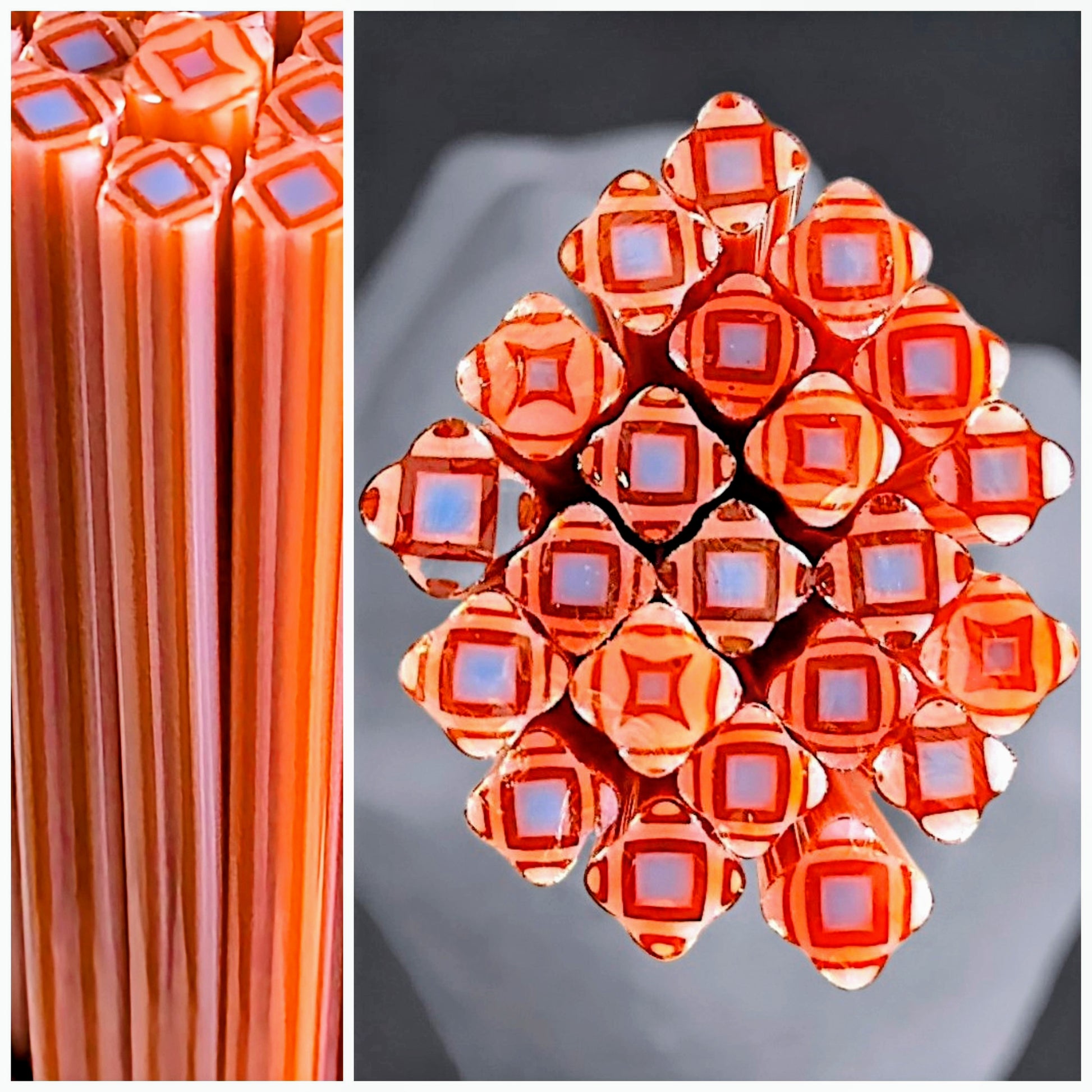 S/M Cane: 5 pieces of cane each approximately 2" in length from various areas of the pull for variety. Width of M/LG Square Cane is typically 6mm - 8.5mm.