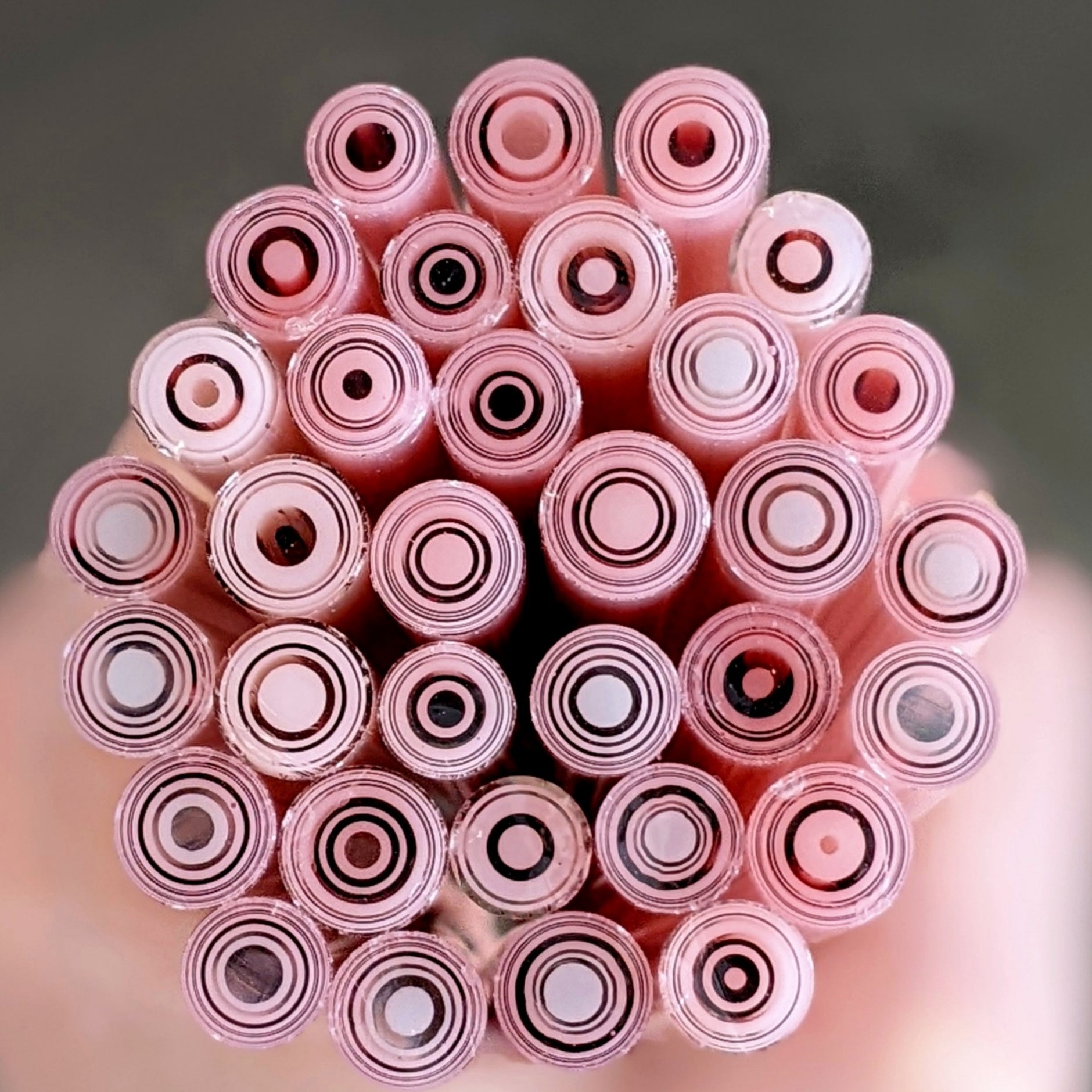 Slices: Number of slices will vary depending upon the diameter of murrini. Slices are typically between 1/8" - 1/4" (3mm - 6.5mm) tall but may vary slightly + or -. An entire pot is chopped, mixed up for variety and then sorted into 1oz bags. No hollows. Diameter of Sliced Murrini is typically between 6 - 10.5 mm.
