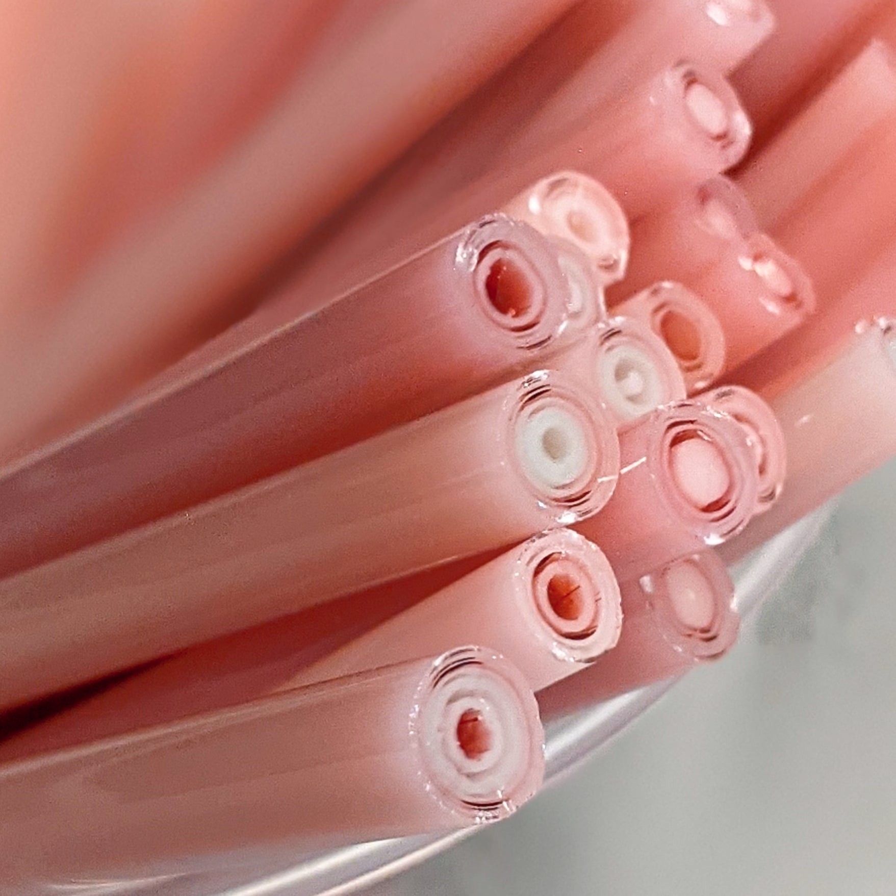 Reg Cane: 5 pieces of cane per ounce, each piece is approx 2.25" in length from various areas of the pull for variety. No hollows. Diameter of Regular Cane is typically between 6mm - 8.5 mm.