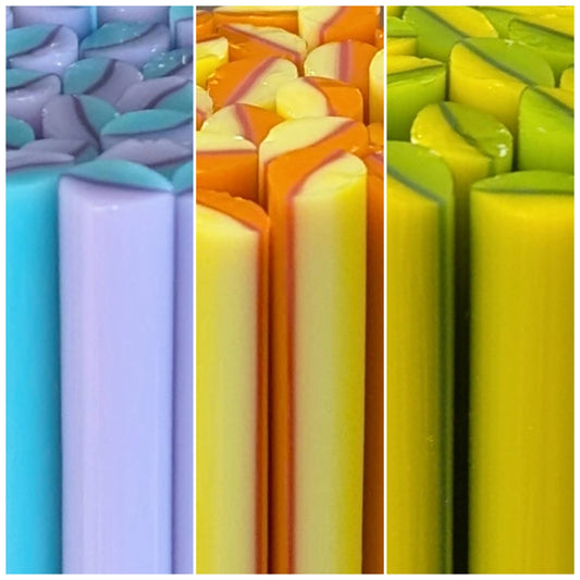 Murrini is handpulled COE 90 Bullseye glass, available in cane and slices.