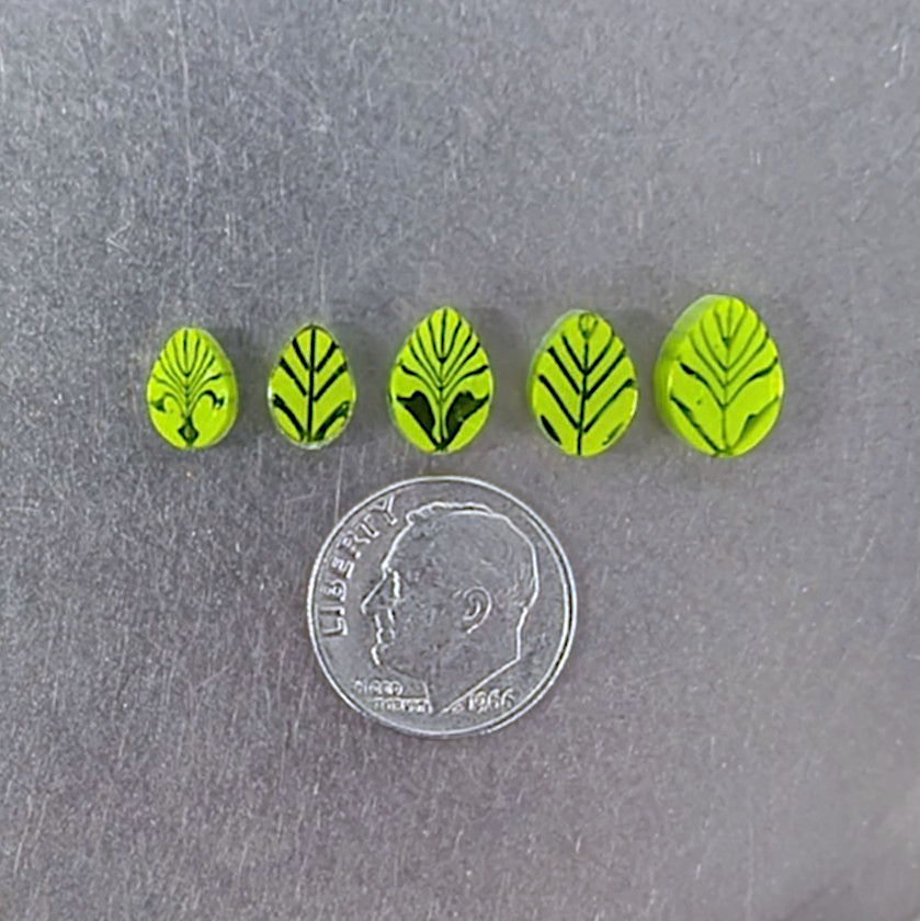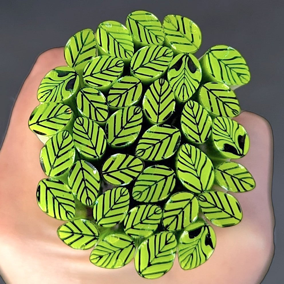 Spring Leaves COE 90 has a lovely leaf shape and includes hues of opal and transparent spring green.