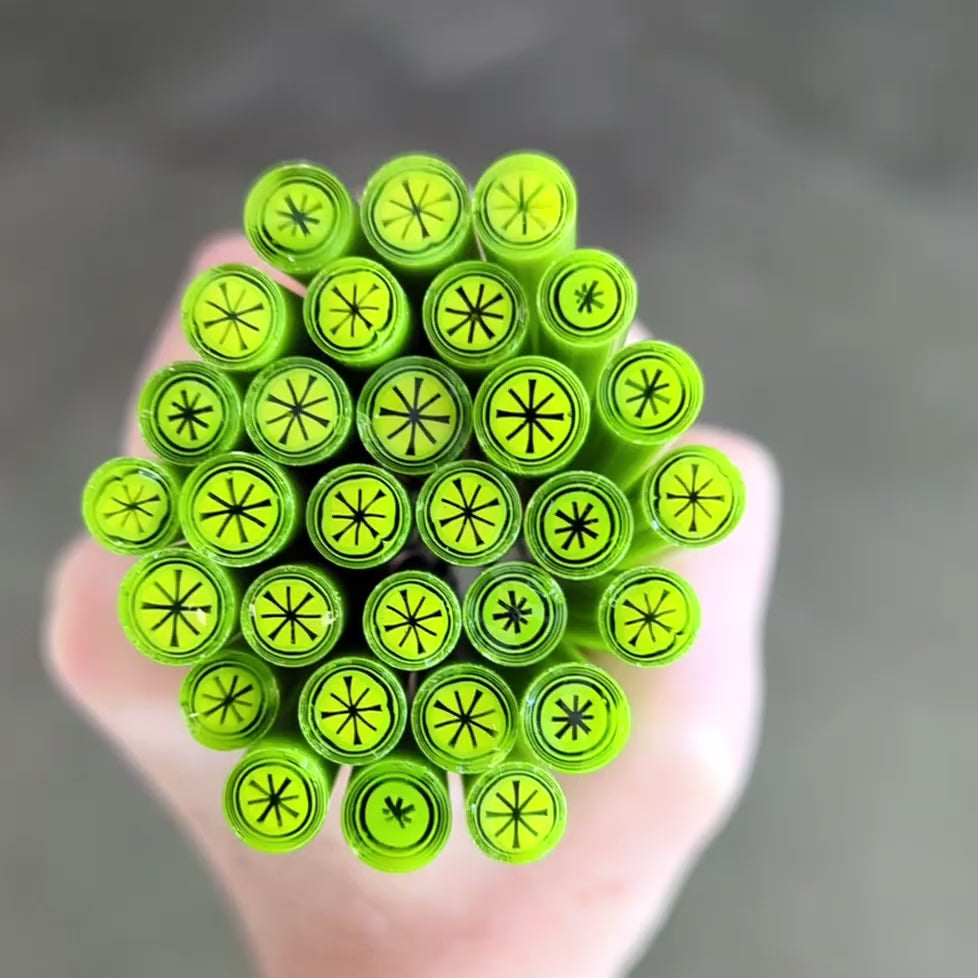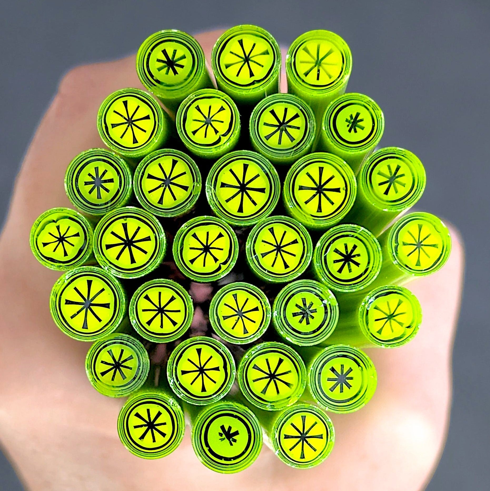 Slices: Number of slices will vary depending upon the diameter of murrini. Slices are typically between 1/8" - 1/4" (3mm - 6.5mm) tall but may vary slightly + or -. An entire pot is chopped, mixed up for variety and then sorted into 1oz bags. No hollows. Diameter of Sliced Murrini is typically between 6 - 10.5 mm.