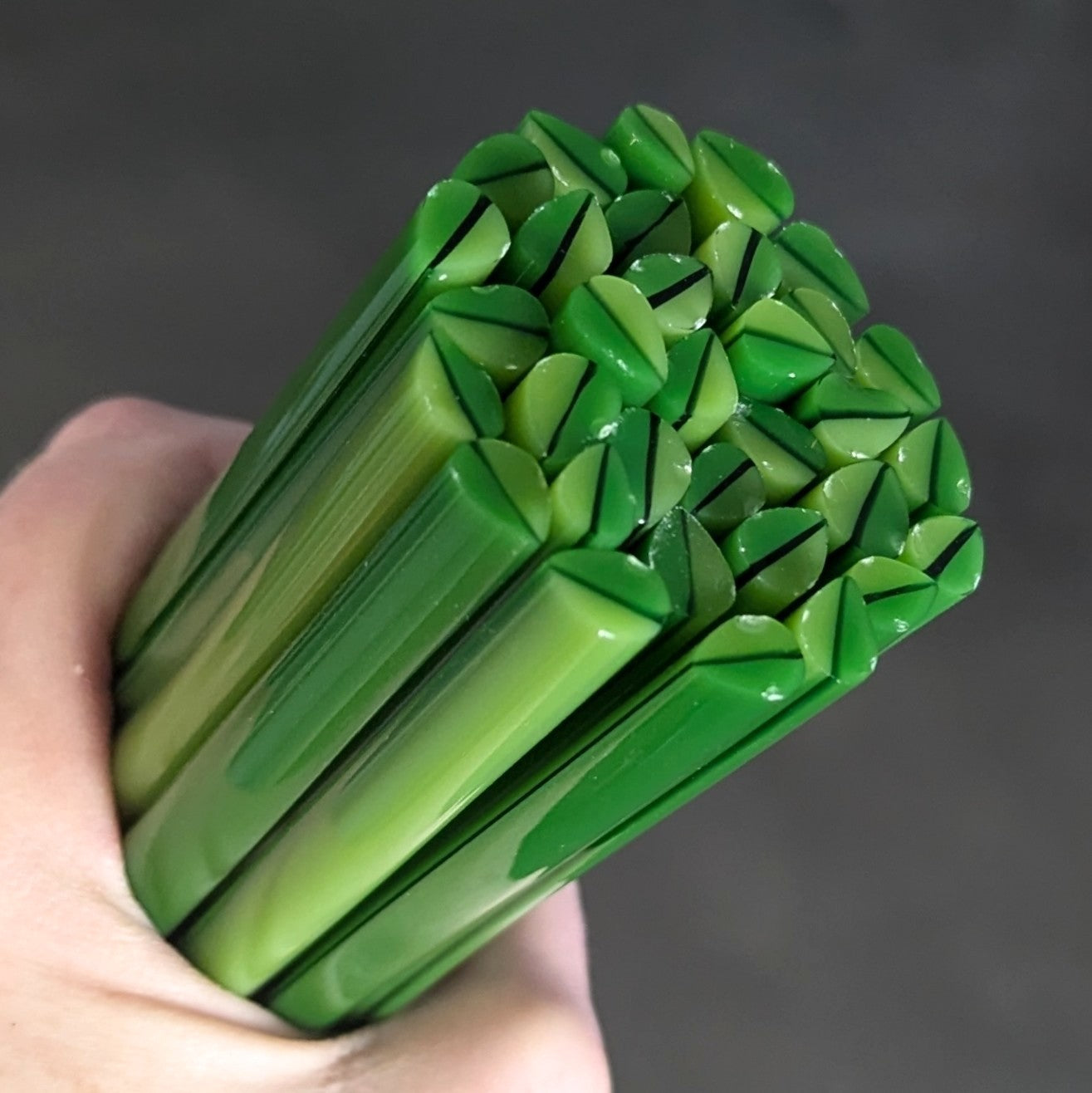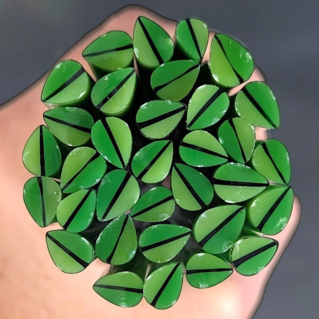 S/M Cane 1oz: 6 pieces of murrini each approximately 2"-2.25" in length from various areas of the pull for variety.
