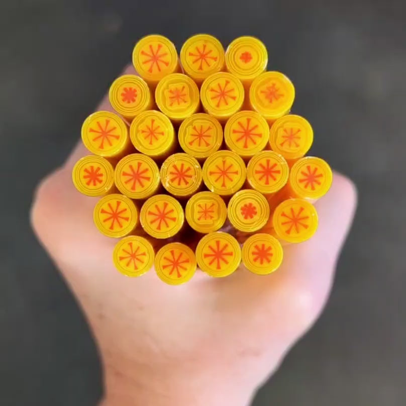 Cane: Typically 5 pieces of cane per ounce, each piece is approx 2" - 2.25" in length from various areas of the pull for variety. If diameter is on the larger end of the range, may be 4 pieces. No hollows. Diameter of Cane is typically between 6mm - 8.5 mm.